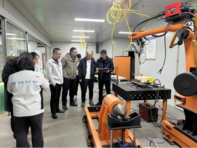实操环节注重与工程实际对接, 参训教师在指导下亲手操作焊接机器人、激光复合焊接、等离子焊接等先进装备,全程参与轨迹编程、路径调试、参数优化及焊缝检测,切实掌握智能焊接装备操作技能。 此外,教师们还参观了研究院焊接工程应用中心与产业化中心,直观感受全流程自动化、智能化生产场景,深入了解智能焊接技术落地应用,精准把握焊接行业发展动态。