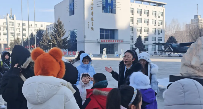 立春之日,万物启新。 2月4日,哈尔滨华德学院迎来了一批特殊的访客——来自四川成都的研学团。 在“艺媒匠心”非遗团队的引导下,三十余名青少年学子开启了一场贯穿“空天硬核科技”与“非遗人文情怀”的跨纬度研学之旅,亲身体验了哈尔滨华德学院“思政底色、艺术特色、文化亮色”深度融合的育人实践。