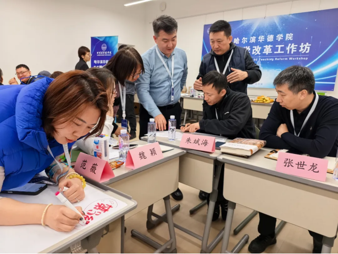 思想是行动的先导,思想破冰是SC教学改革的前提,核心在于打破教师主导、学生被动的固有思维桎梏。 哈尔滨华德学院通过搭建“专家引领+分层学习+实践探索”的理念传播体系,组织系统学习SC改革的核心内涵、方法论与实践案例,深入解 读布鲁姆认知模型、反向设计法等关键内容, 逐渐转变教育观念——从“关注教了什么”转向“关注学生学会了什么”,从单向灌输转向精准赋能。 如今,越来越多的一线教师跳出传统教学舒适区,主动探索SC教学模式,沉浸式融入到课程改革中,主动分享课程设计和教学理念,教学思想的深刻跃迁让局内局外人深刻认识到,改革不是“选择题”而是“必修课”,不是“形式创新”而是“本质革新”,切实凝聚全员参与、共建共享的改革共识。
