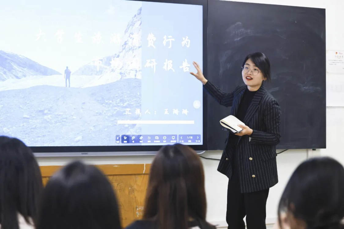“我始终坚信,教学方法没有固定的模式,只有最适合学生的路径。在《市场调查与预测》课程中,我将多种教学方法有机融合,引入企业真实调查项目,让学生走出教室、深入市场,在真实的调研实践中完成从数据收集到决策分析的全流程训练。让课程成为师生共创的探究场域,实现从“被动听讲”到“主动建构”的跨越。我愿做学生探索路上的同行者!”