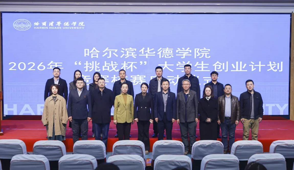 为深入学习贯彻习近平新时代中国特色社会主义思想,培育青年创新创业能力,助力教育科技人才融合发展,3月16日,哈尔滨华德学院在图书馆学术报告厅举行2026年“挑战杯”大学生创业计划竞赛校赛启动仪式。副校长张艳、副校长魏可霏、校长助理朱斌海出席,学生处处长马旭远、各学院院长、教师代表及学生处、校团委相关人员、全体辅导员和学生代表参加本次仪式。仪式由校团委书记、学生处副处长高雨萌主持。