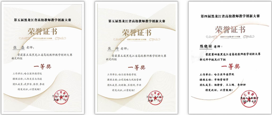 此次成果获奖是荣誉,更是新起点。哈尔滨华德学院将以此为契机,持续深化教学改革与产教融合,深耕应用型人才培养,为龙江全面振兴、全方位振兴贡献更多“华德力量”!