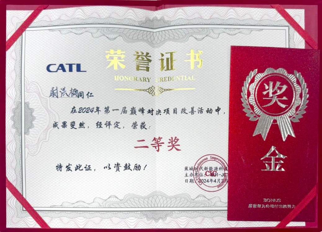 △ 尉洪楠在公司巅峰对决项目改善活动中荣获二等奖