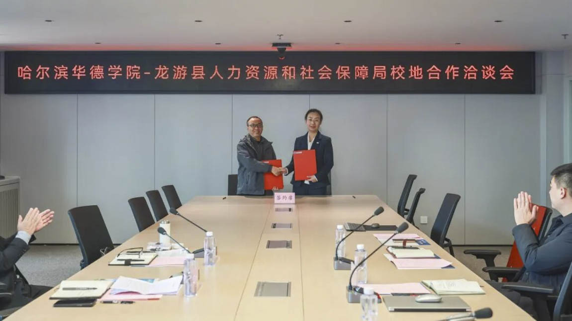 11月25日,学校成功举办“哈尔滨华德学院—龙游县人力资源和社会保障局校地合作洽谈会”。浙江省衢州市龙游县人社局党组成员、人才和就业管理中心主任王勇平带领10家企业代表一行12人到校走访,哈尔滨华德学院校长助理魏可霏及相关负责同志出席会议。政企校三方以“资源共享、优势互补、合作共赢”展开讨论。同日,龙游县10家企业团体招聘在学校顺利召开,以“战略合作+即时就业”开启了政校企合作新篇章。