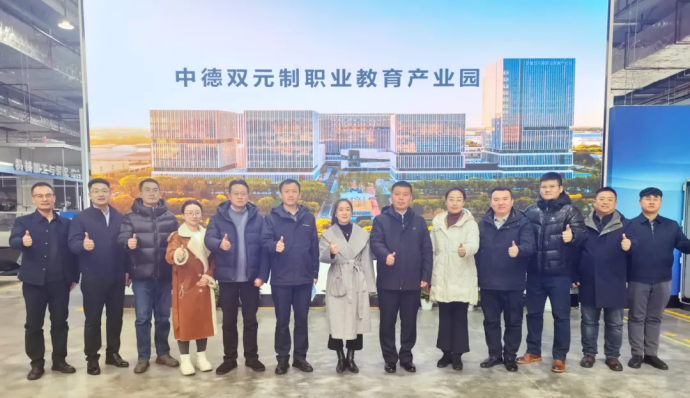 在中德双元制职教产业园, 李长威校长一行实地参观双元制交流中心与产业园核心区域, 深入考察双元制职业教育的实训体系建设、创新教学模式及产教深度对接机制。