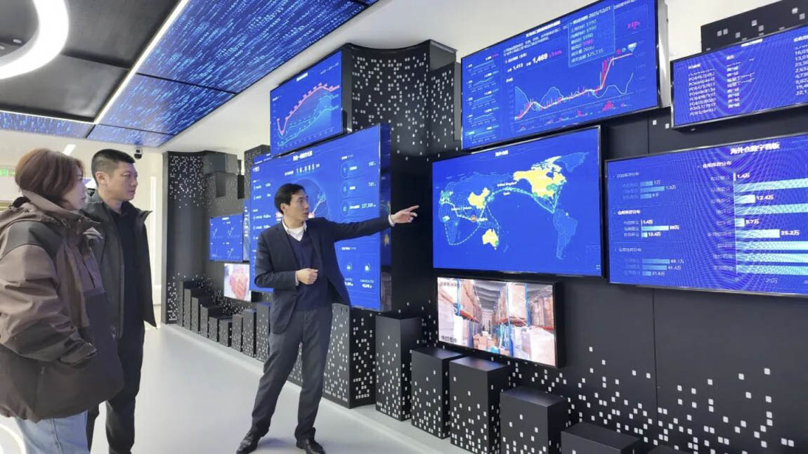 义乌作为全球小商品贸易枢纽,其数字创意与设计产业的创新发展态势为应用型设计人才培养提供了鲜活范本。走访首站,一行人抵达义乌商贸城数字创意中心,沉浸式感受“世界义乌”商贸大模型赋能下的产业变革。中心内,“小商AI设计”“小商AI视创”等智能工具的广泛应用,实现了从创意生成、产品设计到多语种营销的全链路高效赋能,让团队深刻认识到AI技术与设计产业融合的核心趋势。双方就数字创意人才能力需求、产学研合作场景搭建等议题深入交流,为学院优化课程体系、融入AI设计教学提供了重要参考。