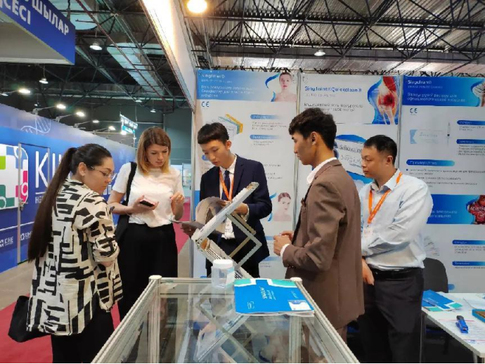 △ 姜宇飞在莫斯科展会上为顾客讲解产品