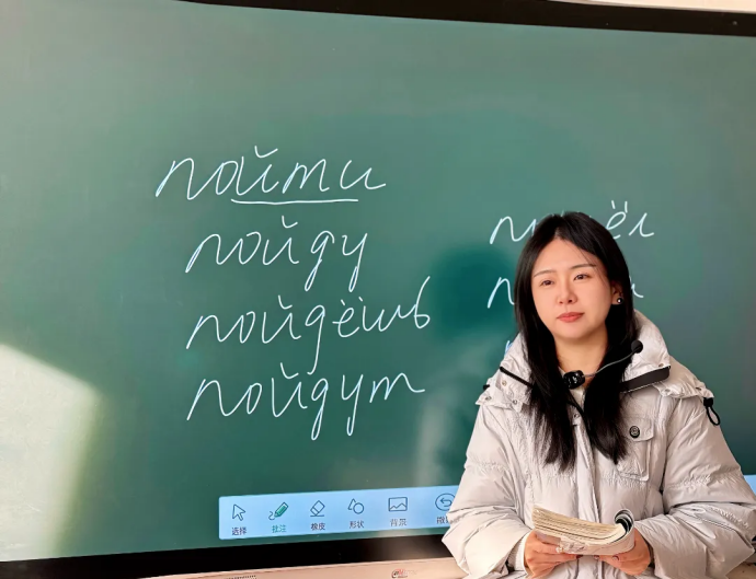 △ 王雪杰为学生讲解俄语语法