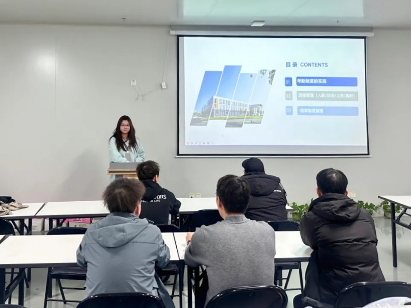 △苍雨鑫为员工讲解企业考勤制度